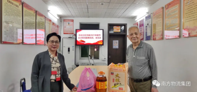 在新春佳节即将来临之际,官金仙董事长作为人大代表,对石化社区困难党员进行走访慰问,在给他们送去慰问品的同时,也为他们送上了新春的问候。祝福他们度过一个幸福、欢乐的春节。